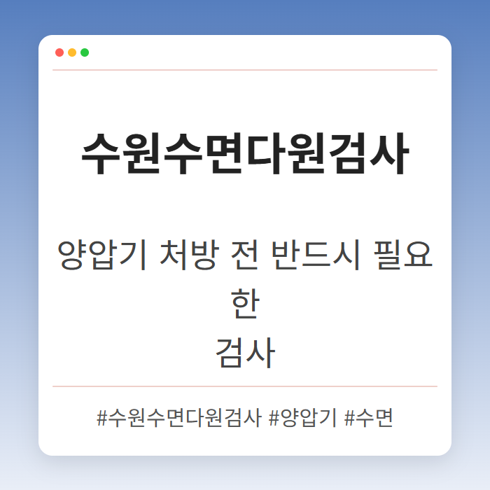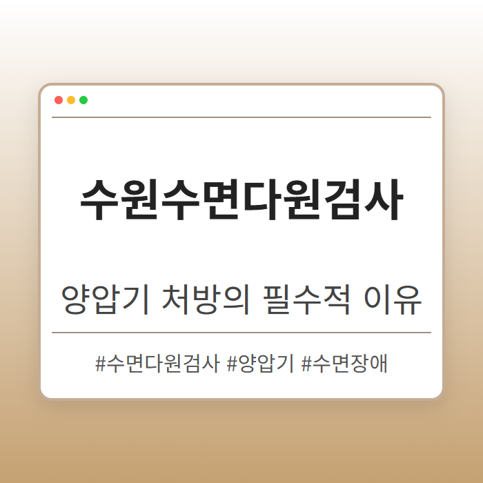 양압기 처방을 받기 전, 반드시 시행해야 하는 수원수면다원검사의 중요성을 설명합니다. 이 검사는 수면의 질을 평가하고, 수면 중 발생하는 여러 가지