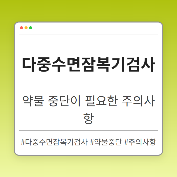 다중수면잠복기검사는 수면 패턴을 평가하는 중요한 진단 도구입니다. 이 검사를 진행하기 전, 특정 약물의 중단이 필요하며, 이에 따른 주의사항을 상세히 설명합니다.
